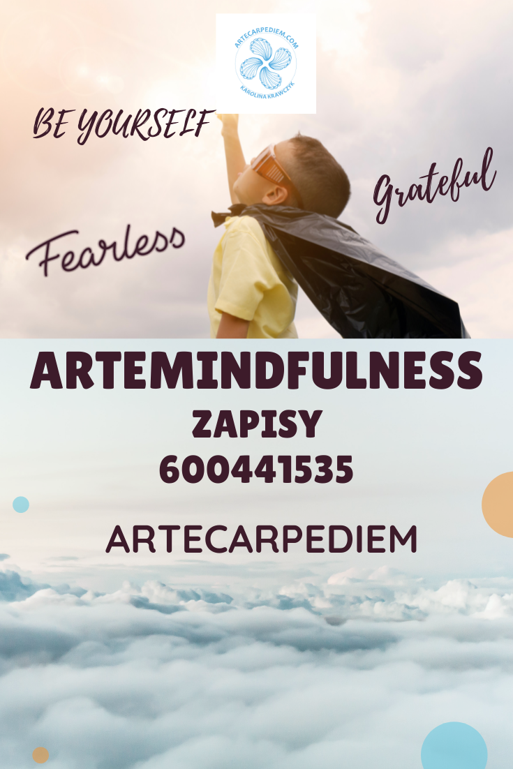 Mindfulness to nauka uważności, sztuka życia tu i teraz, doceniania, wdzięczności, życzliwości. W połączeniu z elementami Arteterapii mamy możliwość obserwacji siebie poprzez umiejętność wsłuchiwania się w zmysły i reakcję na sztukę. Podczas zajęć uczymy się wyciszenia, skupienia uwagi. To nauka o sobie samym – umiejętność wsłuchania się w swoje potrzeby, bycia obecnym w swoim życiu, uspokojenia myśli i emocji, lekcja życzliwości bez oceniania, wśród miłości.